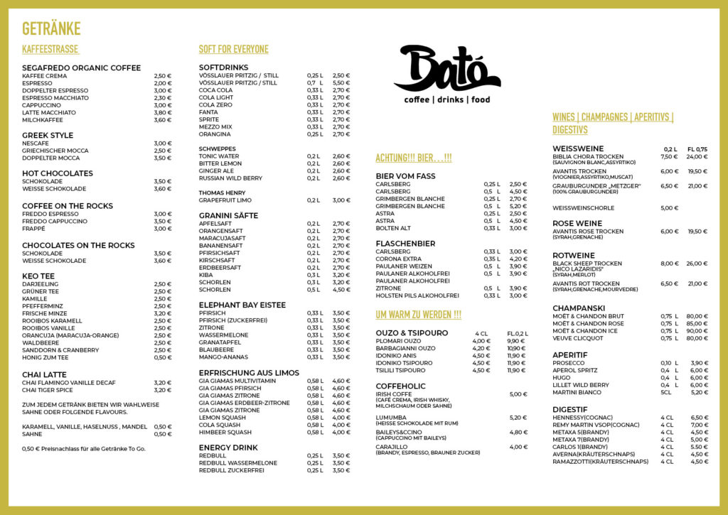 Egal ob Drinks, Snacks oder Café - im Cafe Bato ist man immer richtig!